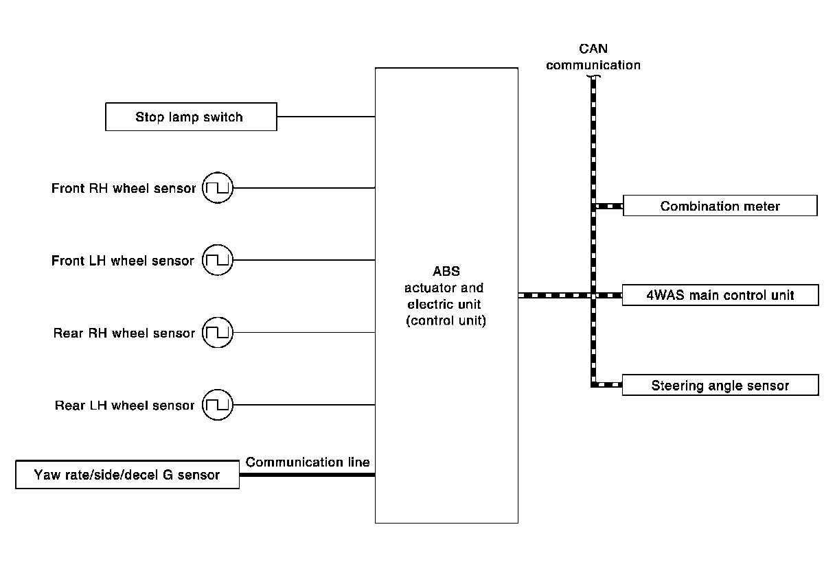 - By preventing wheel lock through brake force (brake fluid pressure) control that is electronically controlled by detecting wheel speed during braking, stability during emergency braking is improved so that obstacles can be easily bypassed by steering operation.
