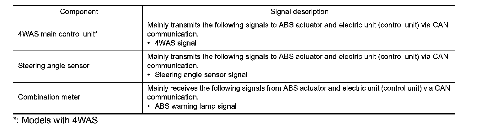 Major signal transmission between each unit via communication lines is shown in the following table.