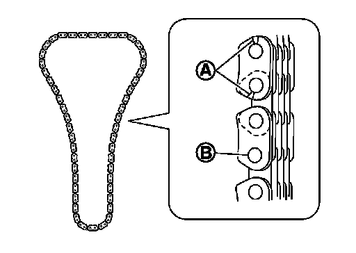 Check for cracks and any excessive wear at link plates and roller links of timing chain. Replace timing chain if necessary.