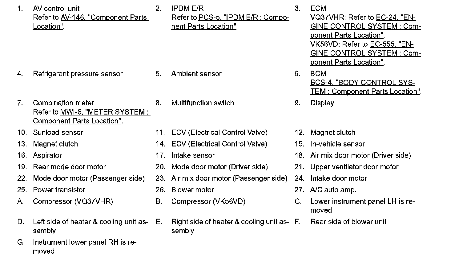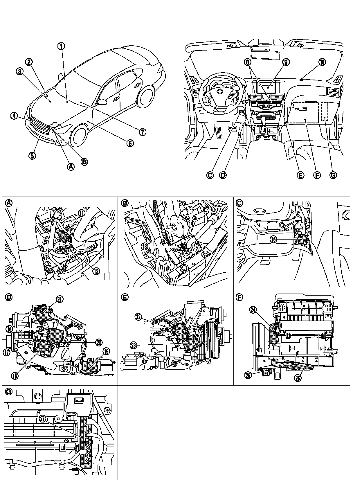 AUTOMATIC AIR CONDITIONING SYSTEM (WITHOUT FOREST AIR) : Component Parts Location