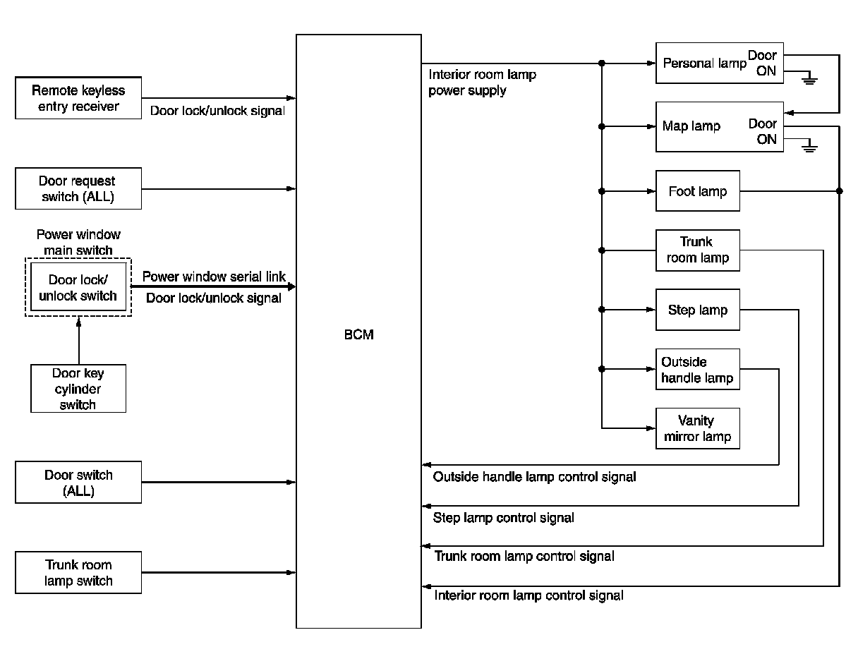 INTERIOR ROOM LAMP BATTERY SAVER SYSTEM : System Diagram
