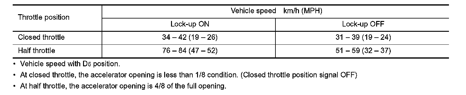 Vehicle Speed at Which Lock-up Occurs/Releases