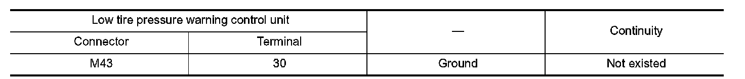 3.Check the continuity between the low tire pressure warning control unit connector and the ground.