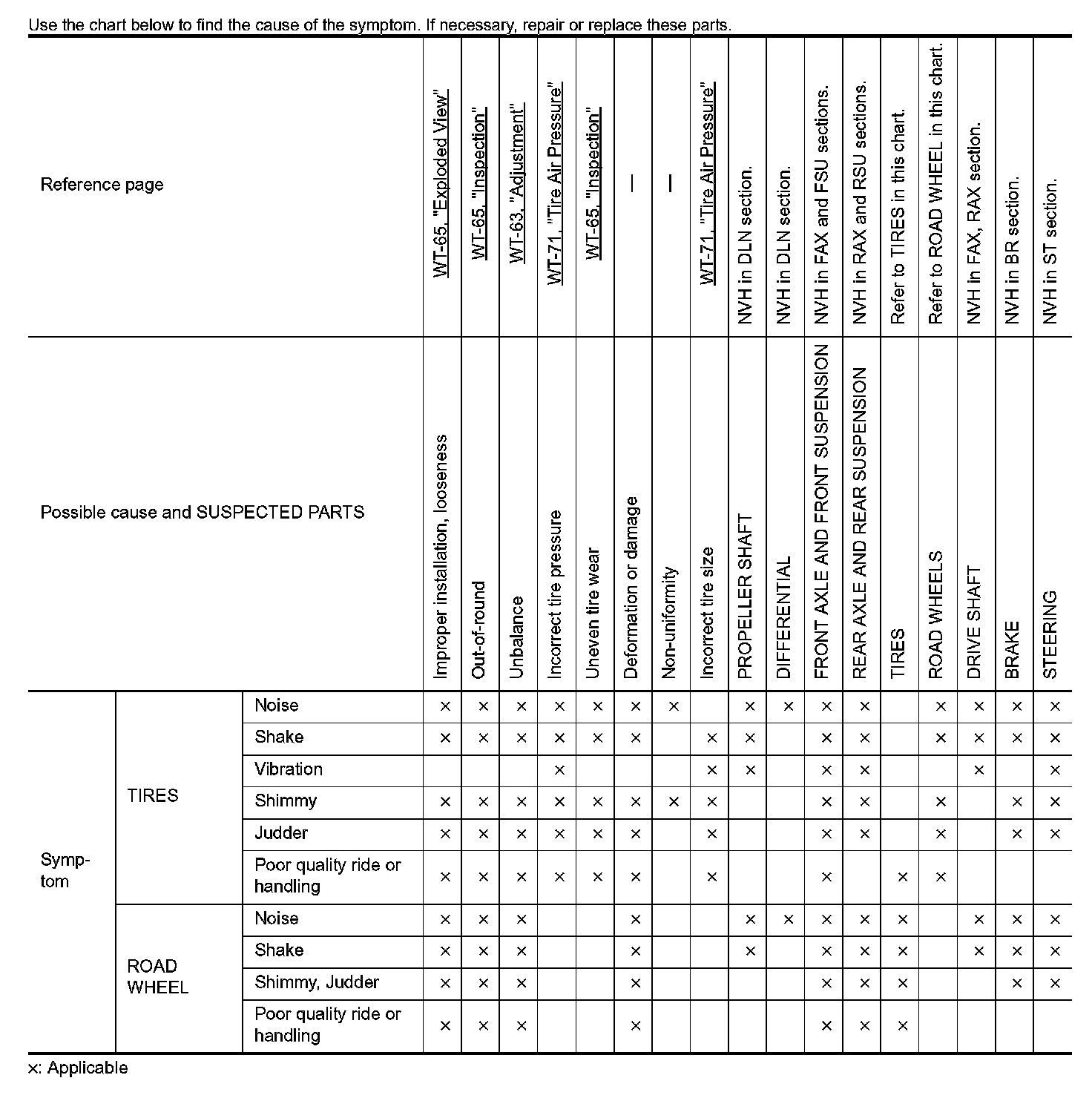 Use the chart below to find the cause of the symptom. If necessary, repair or replace these parts.