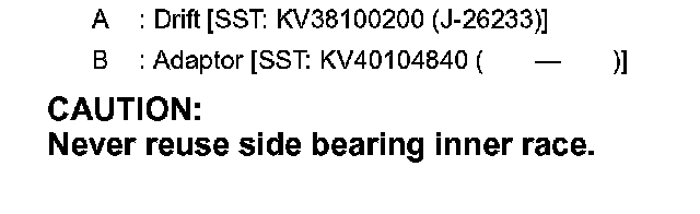 10.Press side bearing inner races to differential case, using the drift (A) and the adaptor (B).