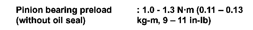 - If the preload torque exceeds the specified value, replace collapsible spacer and tighten it again to adjust. Never loosen drive pinion lock nut to adjust the preload torque.