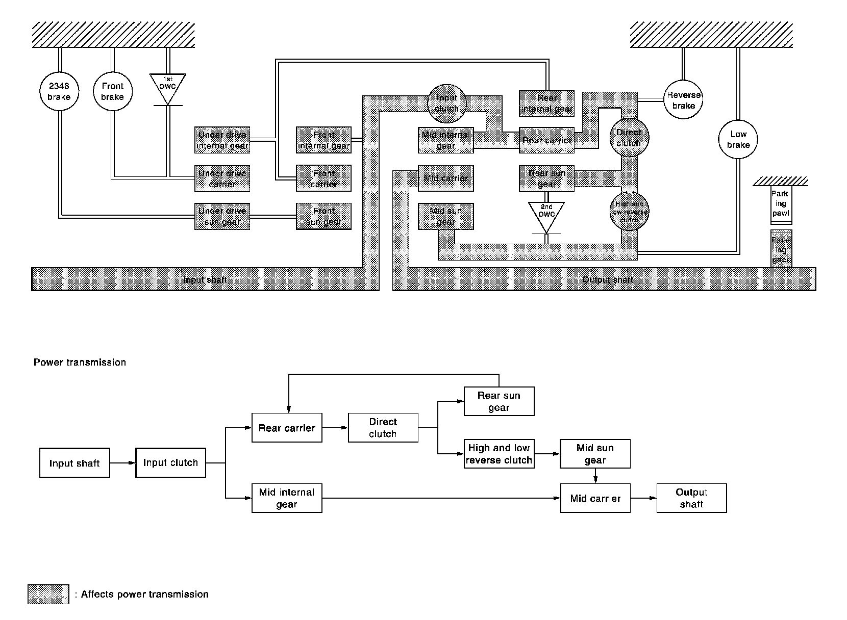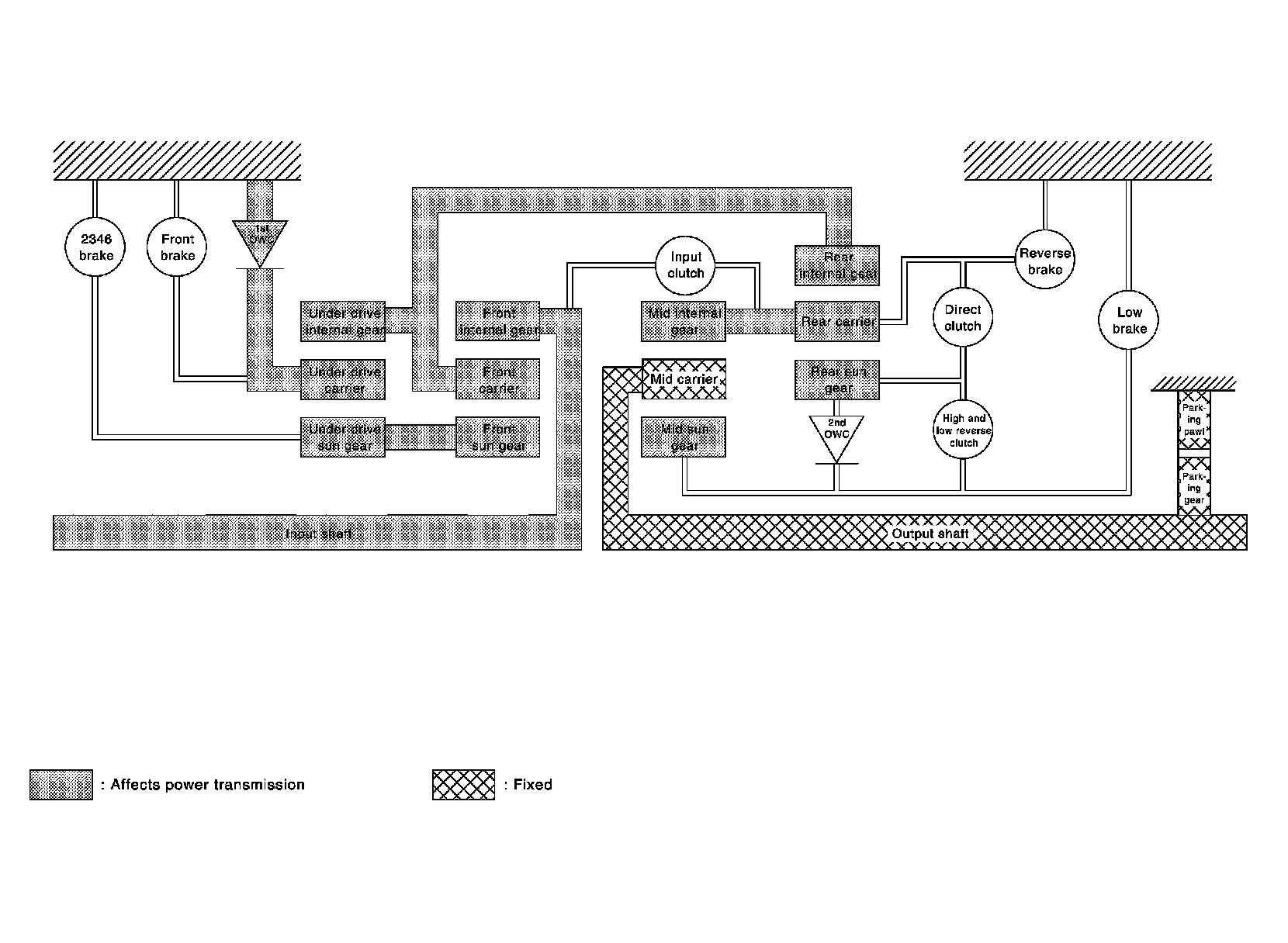 - The same as for the "N" position, since the low brake is released, so torque from the input shaft drive is not transmitted to the output shaft.