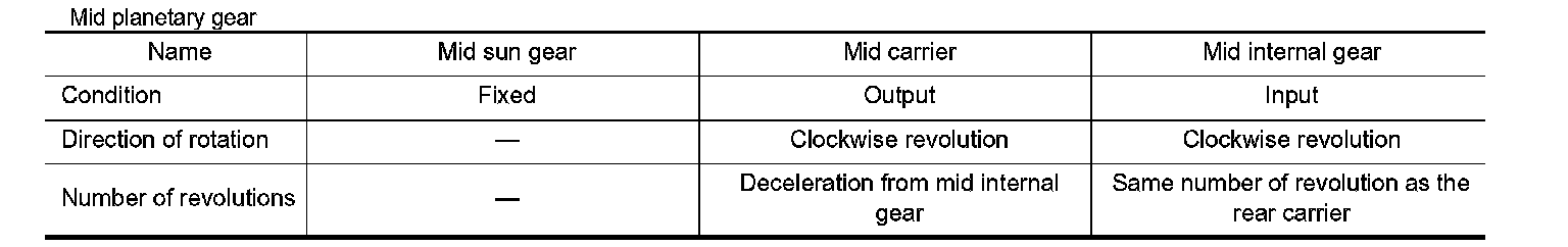 - The rear carrier and the mid internal gear are fixed by the reverse brake.