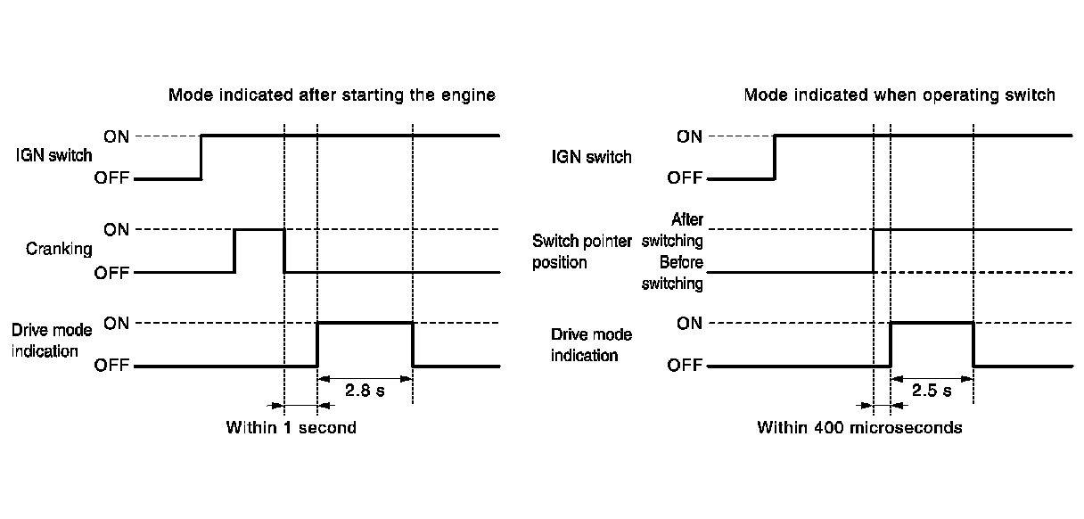 - The A/C auto amp. receives an operational state of the drive mode select switch and transmits a mode signal (See below.) to each unit via CAN communications.