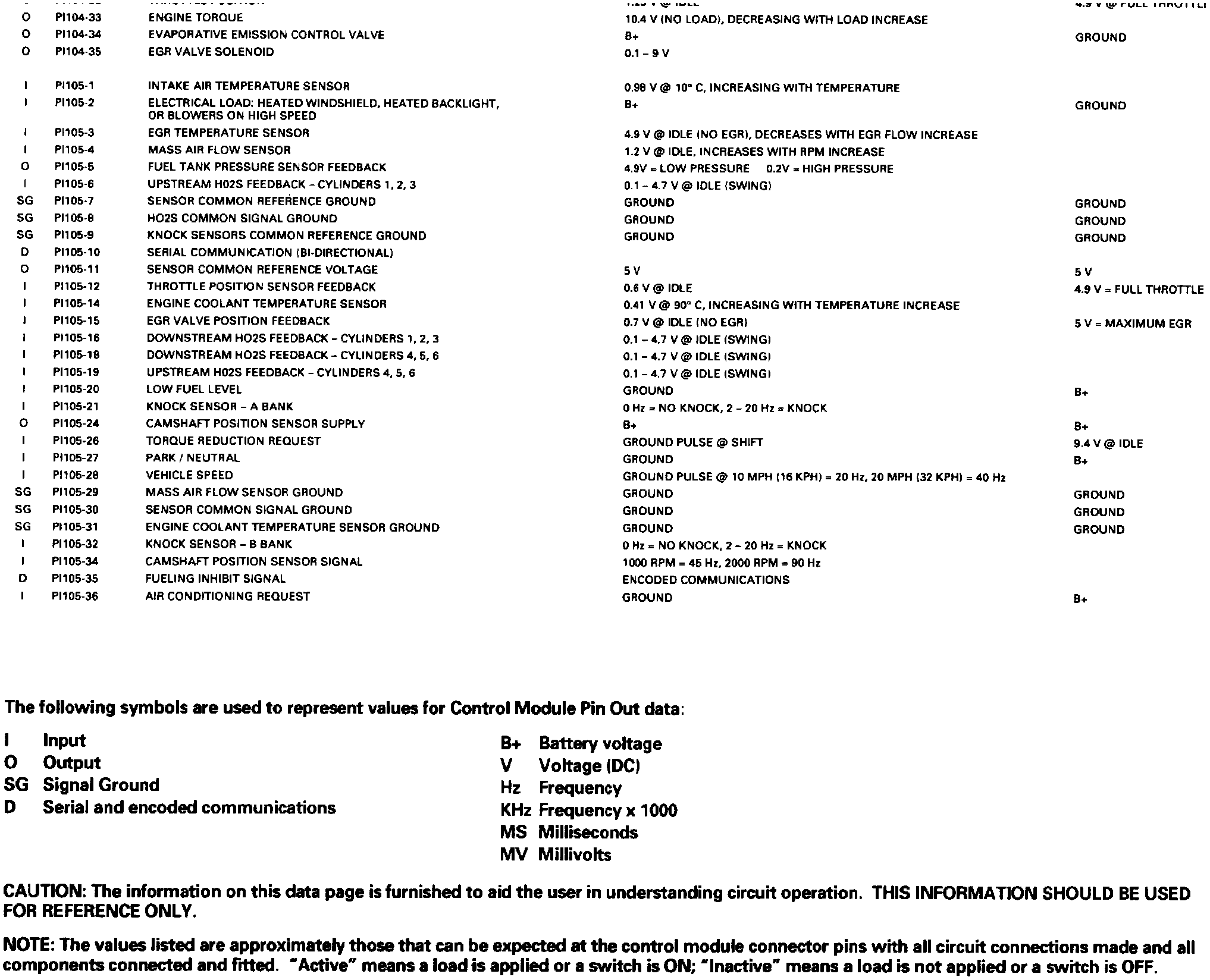 Control Module Pin Out Informations