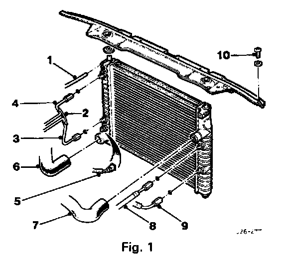 - Disconnect the header tank hose (1 Fig. 1) from the radiator.