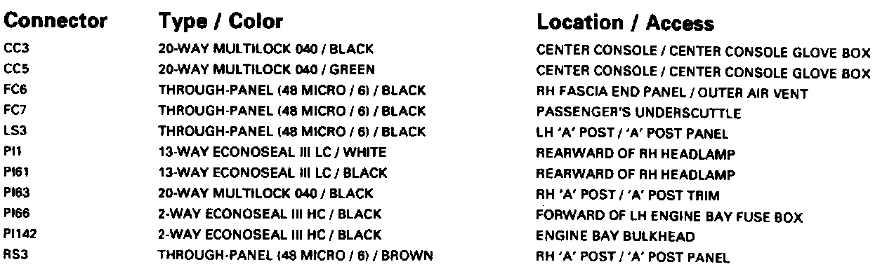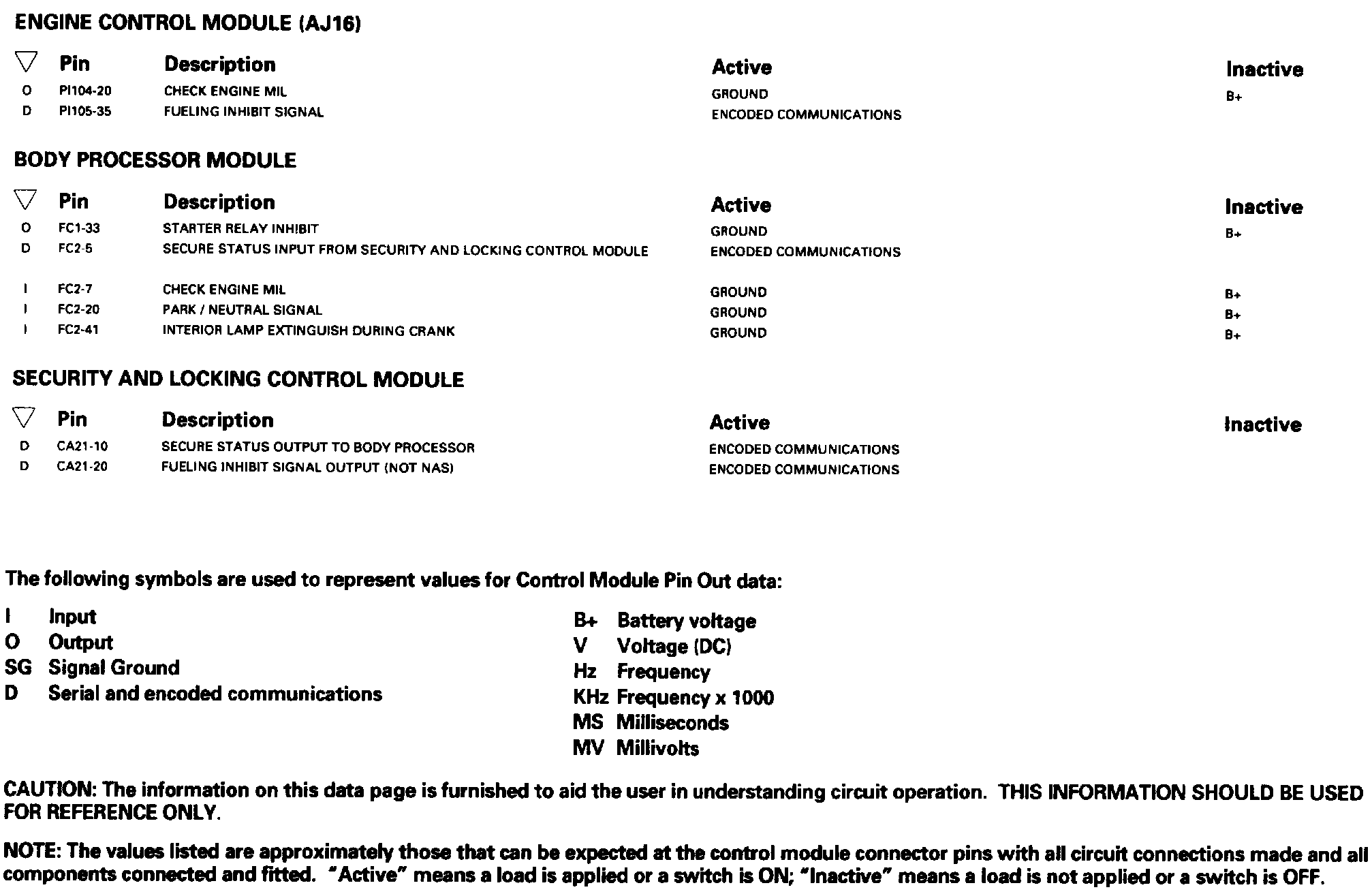 Battery; Starter; Generator: Control Module Pin Out Information: