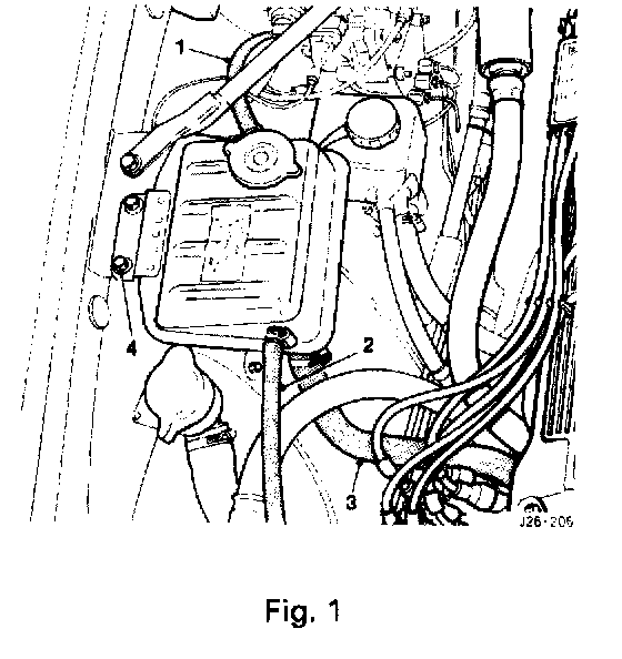 Disconnect the catchment tank (1 Fig. 1) and radiator link pipe (2 Fig. 1) hoses.