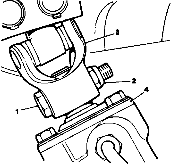 8. Remove bolt (1) and nut (2) securing lower column (3) to steering rack pinion (4), Fig. 7.