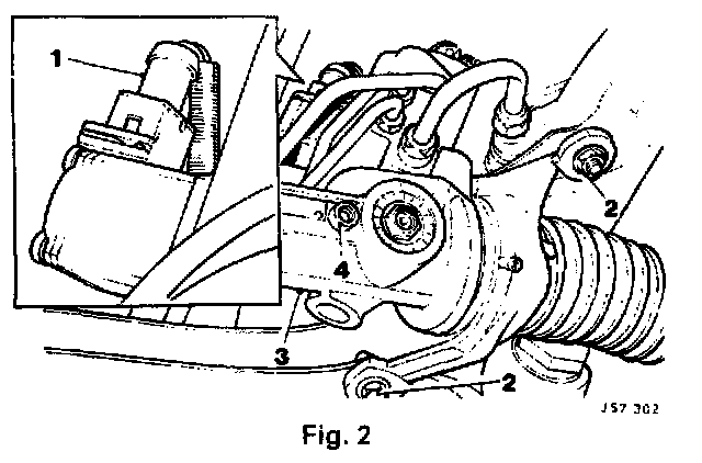 ^ Slacken the nuts and bolts (2 Fig. 1) securing the steering rack (3 Fig. 1) to the front crossmember -6 cyl, and (2 Fig. 2), and (3 Fig. 2) -12 cyl.