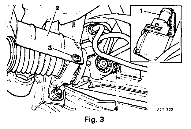 ^ Disconnect the multi-plug from the steering rack (1 Fig. 2) -6 cyl, (1 Fig. 3) -12 cyl.
