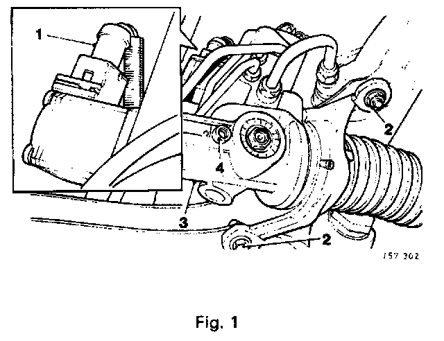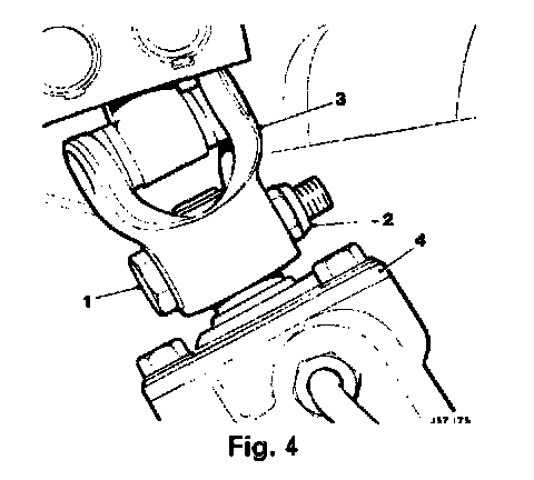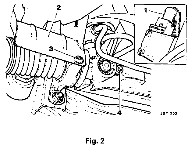 ^ Remove the bolt (1 Fig. 4) and nut (2 Fig. 4) securing the lower column (3 Fig. 4) to the steering rack pinion (4 Fig. 4).