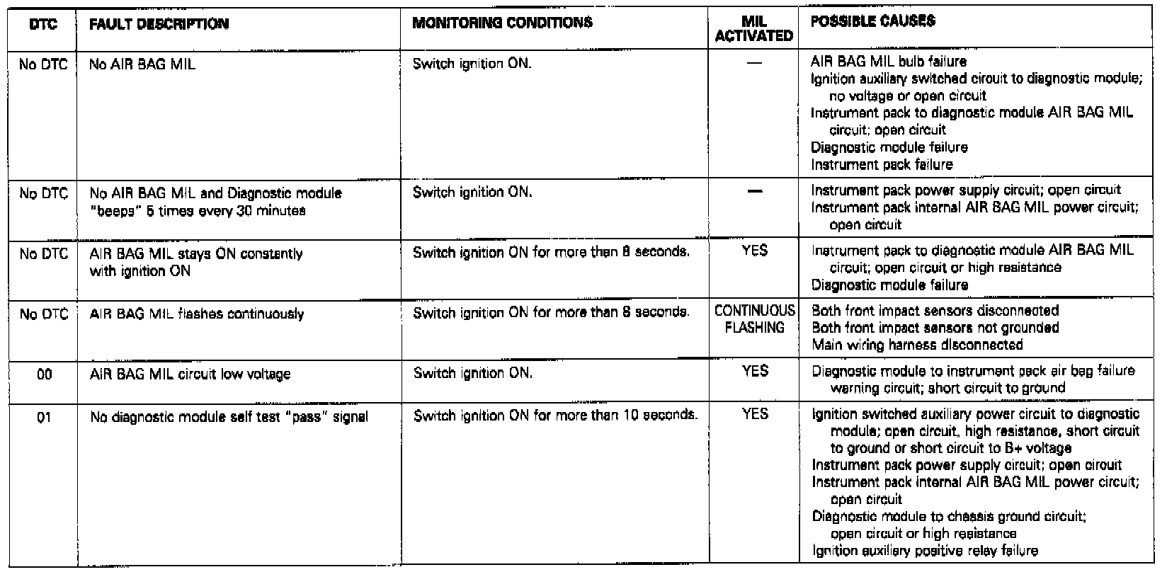 MIL Lamp - DTC 00, 01: