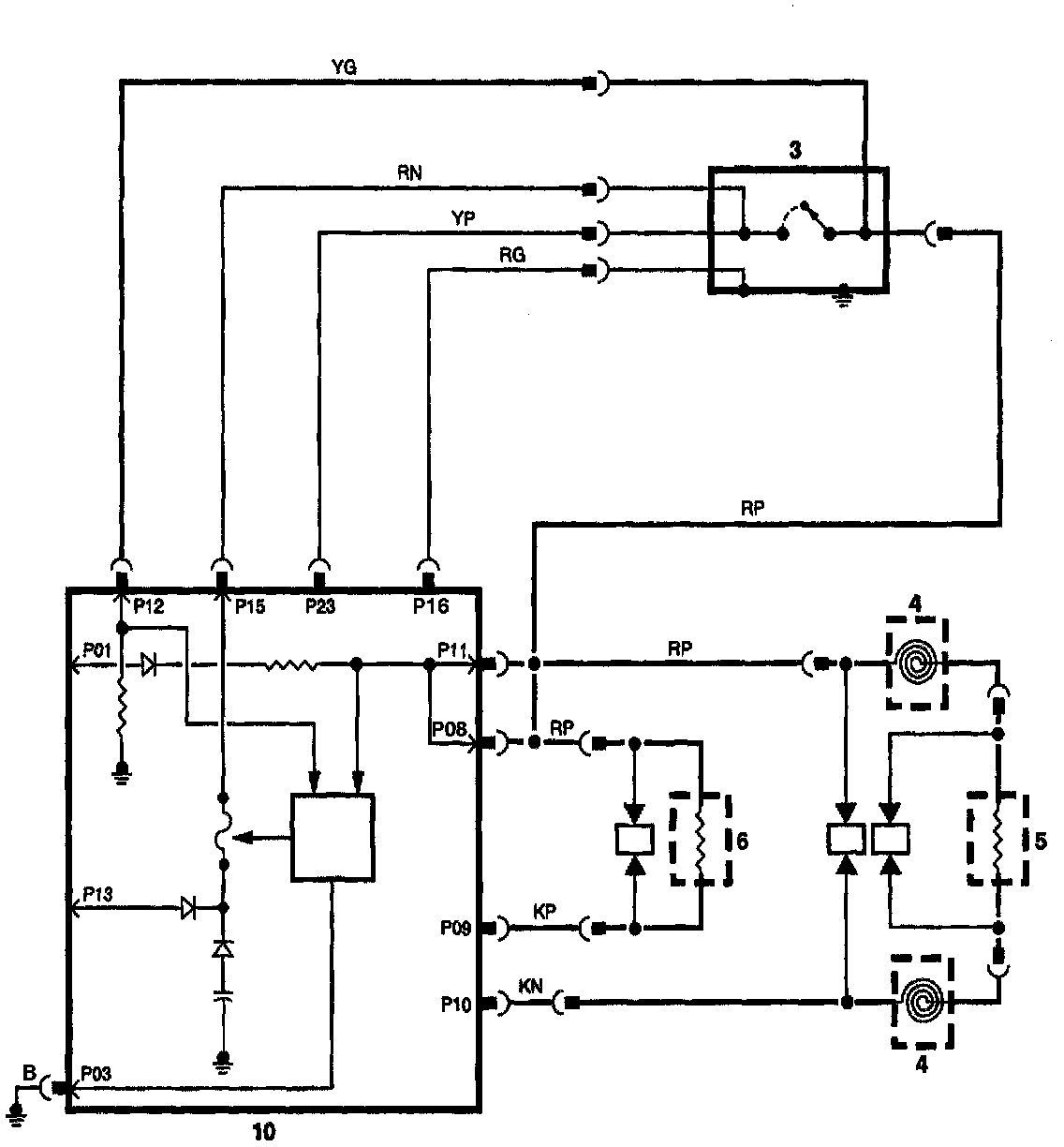 The Air Bag Diagnostic Module (DM) measures voltage level at pins 11 and 12 which varies in accordance with charging voltage. If voltage measured at these two pins exceeds 5 V the MIL Lamp will illuminate and fault code 22 will be present, indicating a short