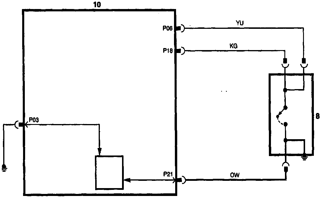 The Air Bag Diagnostic Module (DM) monitors the resistance value between pins 21 and 3. If a resistance of greater than 2.0 Ohm is detected the MIL Lamp will illuminate and fault code 45 will be present, indicating incorrect mounting of the LH impact sensor. Secure connections to ground at both the sensor case and the vehicle are necessary to avoid this fault.