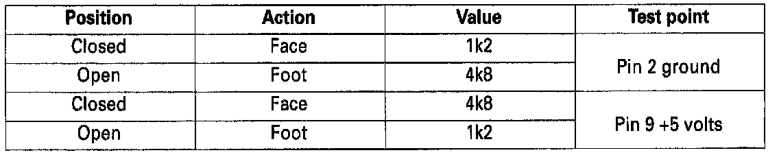 - Test the 5 V supply to the potentiometer at the main unit, pin 9 (positive) and pin 2 (ground). If there is no 5 volt supply, inspect the harness for open circuit or short circuit to ground. If no harness faults are apparent, renew the Air Conditioning Control Module (A/CCM).