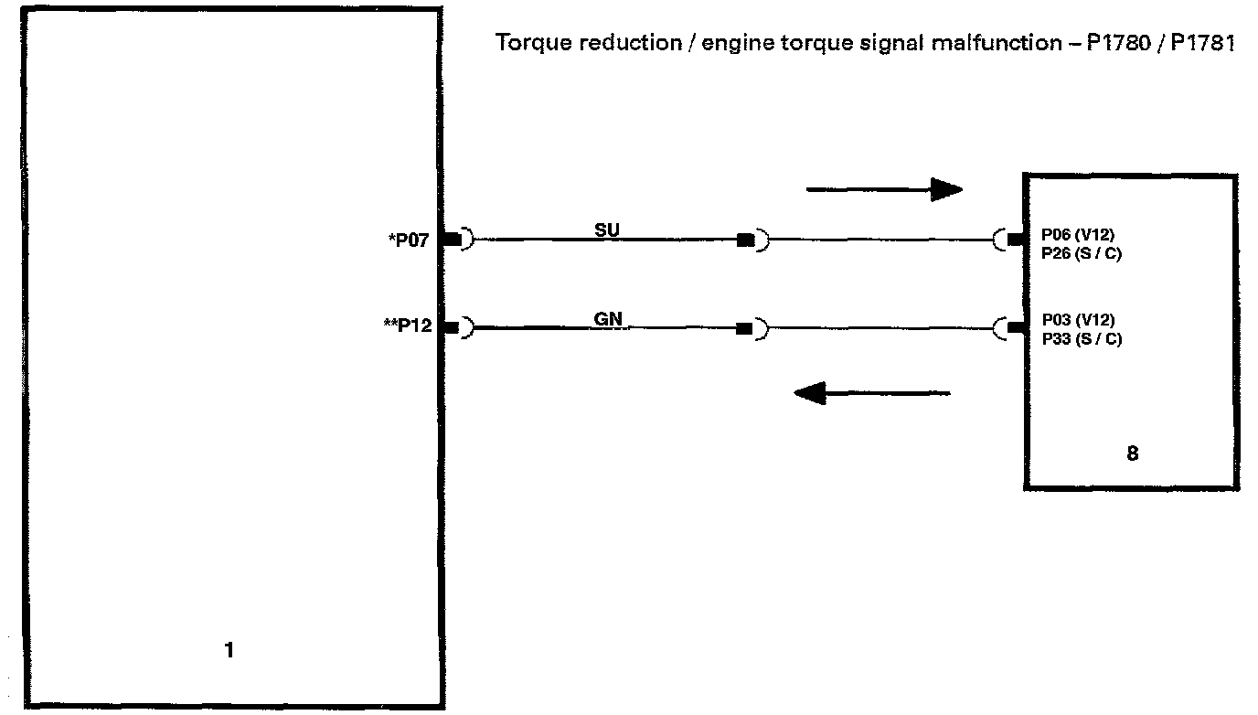 NOTE: * Torque reduction request, ** Engine torque signal.