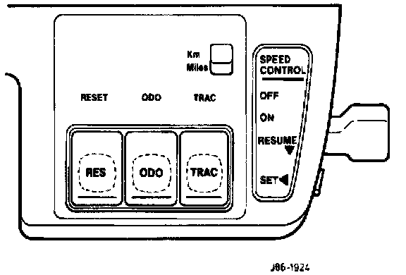 The instrument pack provides the trip computer functions, selected via the momentary stalk input and two action inputs: 'Reset' and 'Odo'.