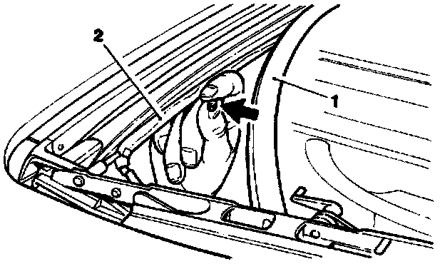 - Carefully remove sliding roof aperture trim finisher (1) from flange.