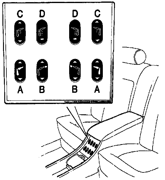 The seat switch pack located centrally on a veneer finisher between the rear seats houses the following switches:Headrest; raise/lower (LH)
