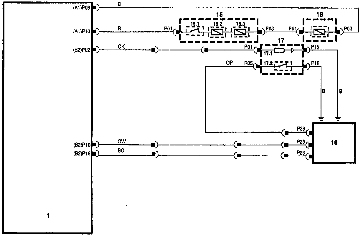 a. Examine harness wiring, checking continuity between SCM connector Al pins 9 and 10. A resistance value of 1.5-3.2 Ohm should be recorded indicating all heating elements intact and thermostat closed.