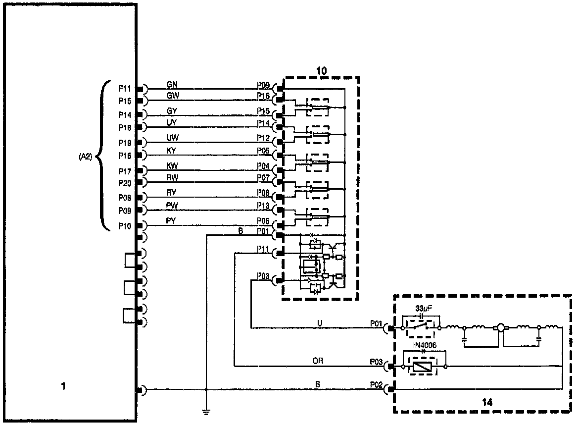 a. Examine harness wiring, checking continuity between SCM multi-pin connector A2 and switch pack connector pins as follows: