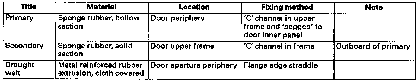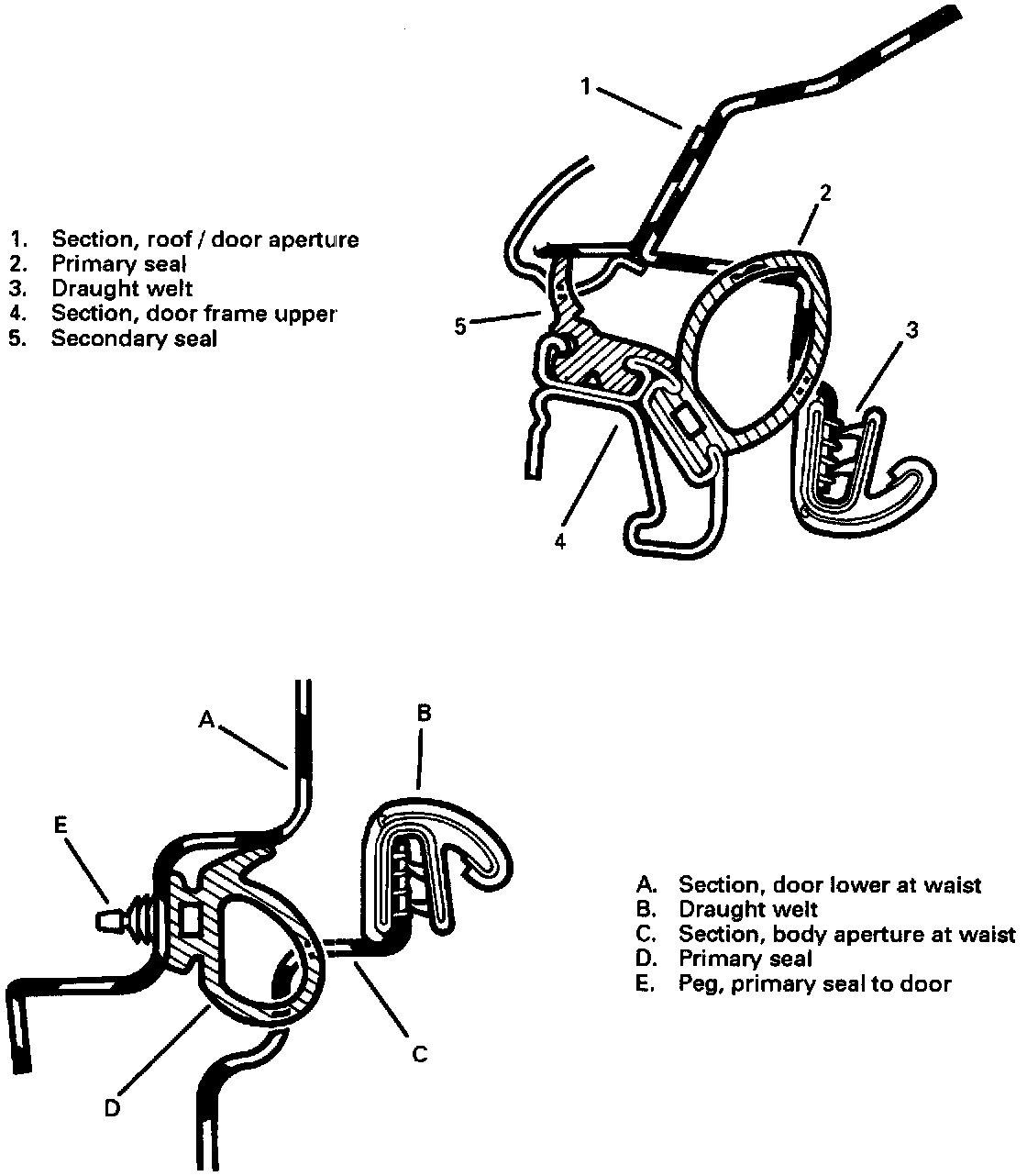 The relationship of the seals to the door and body aperture can be seen in Image. Please note that the seals are shown in the natural state, i.e. not deformed by the door being in the fully closed position.