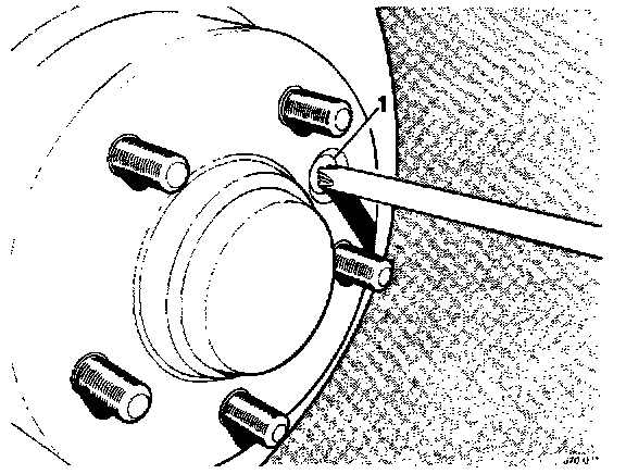 1. Remove one wheel nut mark the wheel relative to the stud, and remove the remaining wheel nuts. Remove the road wheel and tire assembly.