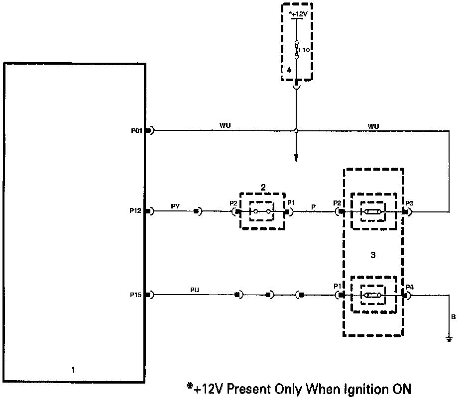 b. Examine harness wiring, checking continuity between valve pins 1 and 2 and SCCM pins 4 and 3 respectively.