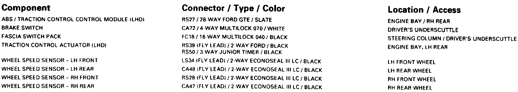 Anti-Lock Braking; Traction Control-LHD: Components: