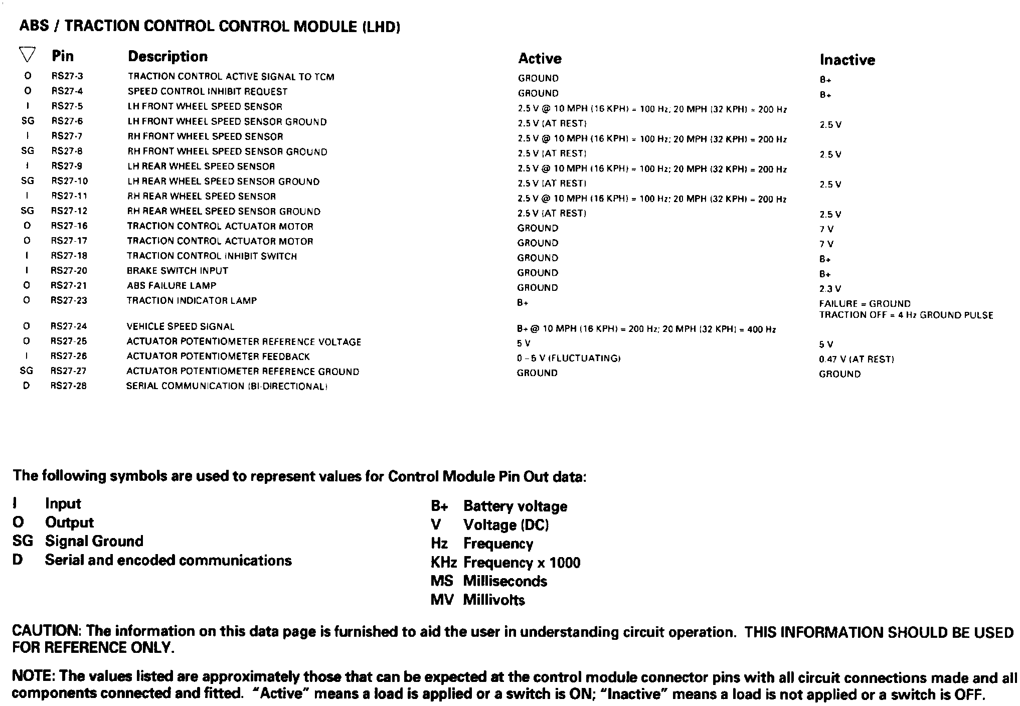 Anti-Lock Braking; Traction Control-LHD: Control Module Pin Out Information: