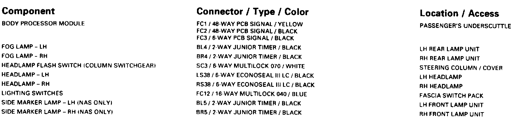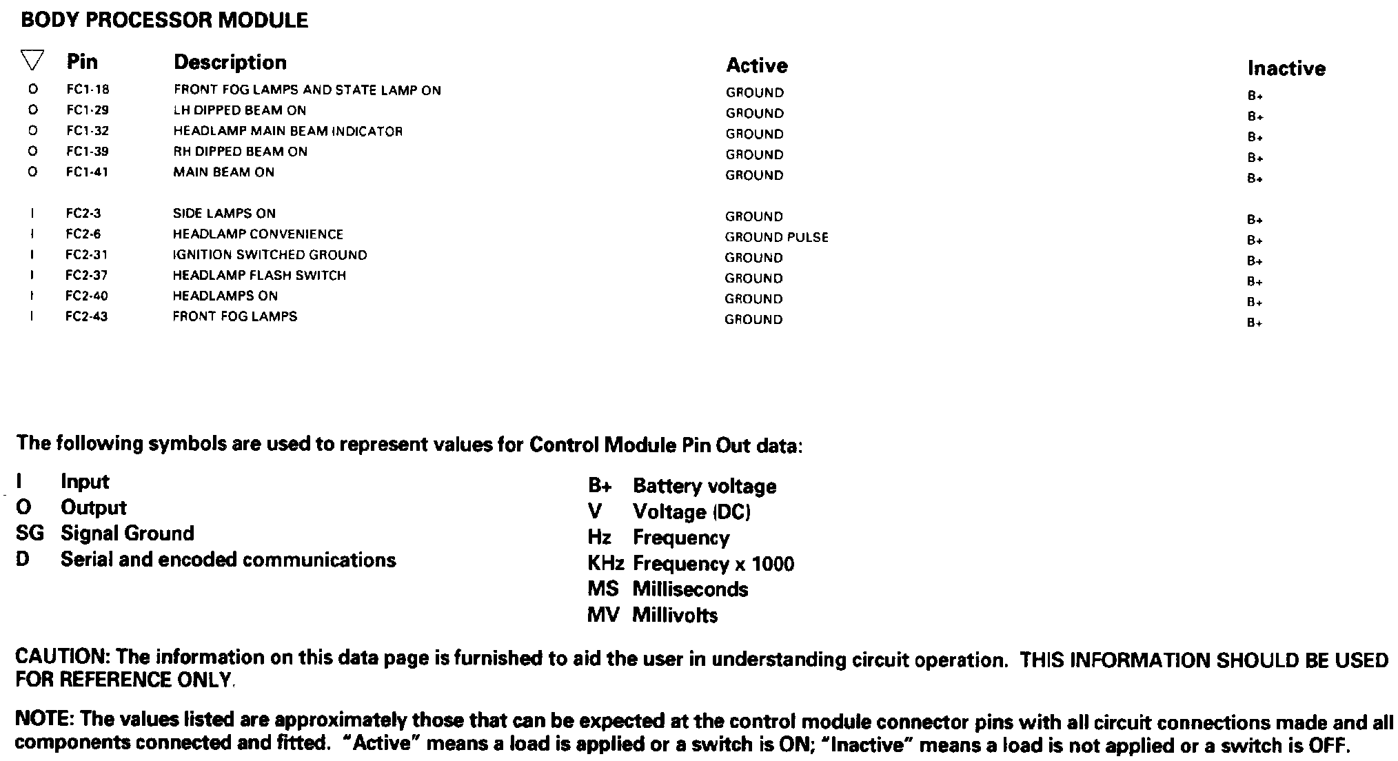 Headlamps; Front Fog Lamps; Front Side Lamps: Control Module Pin Out Information: