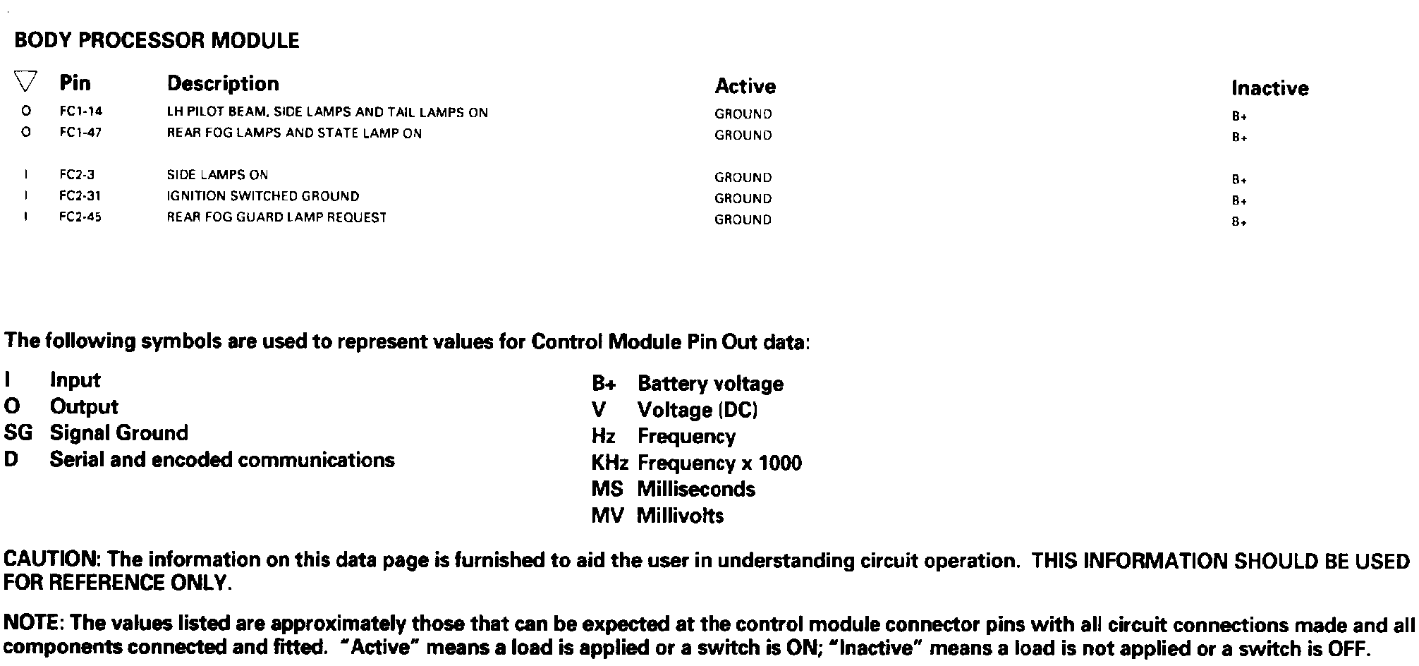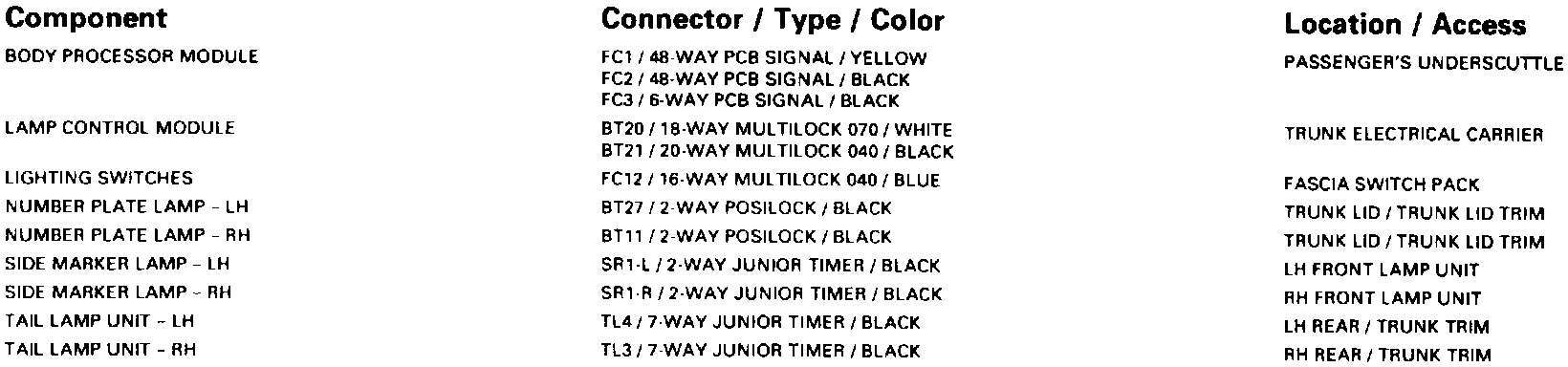 Tail Lamps; Rear Fog Lamps; Rear Side Lamps: Control Module Pin Out Information: