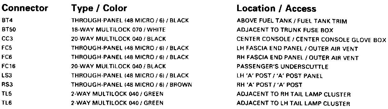 Tail Lamps; Rear Fog Lamps; Rear Side Lamps: Harness-To-Harness Connectors:
