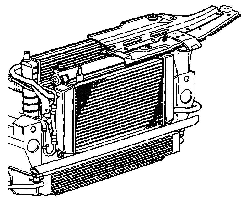 The supercharger radiator is a fin and tube, liquid to air heat exchanger installed between the air conditioning condenser and the front grille.