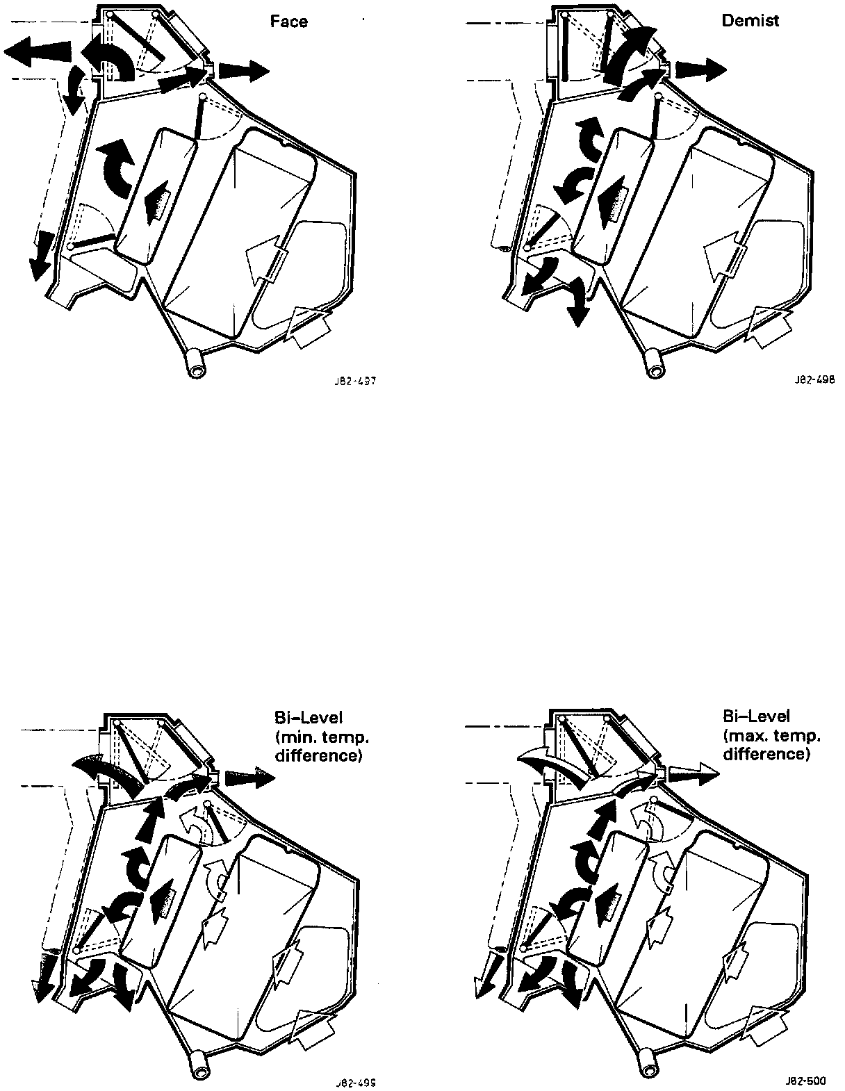 When cooler air than that available from the other outlets is desired at the FACE vents, air by-passes the matrix via the 'cool air by-pass damper' within the range cold to hot.