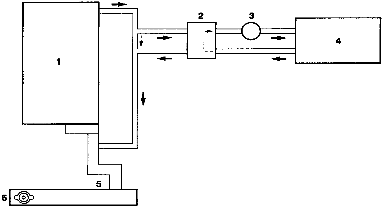 Because the engine coolant pump is driven proportionally to engine speed, the coolant delivery rate changes with engine revolutions thus causing temperature variations. To stabilize the flow through the matrix, and thus the temperature, an electrically driven circulation pump has been introduced into the system.