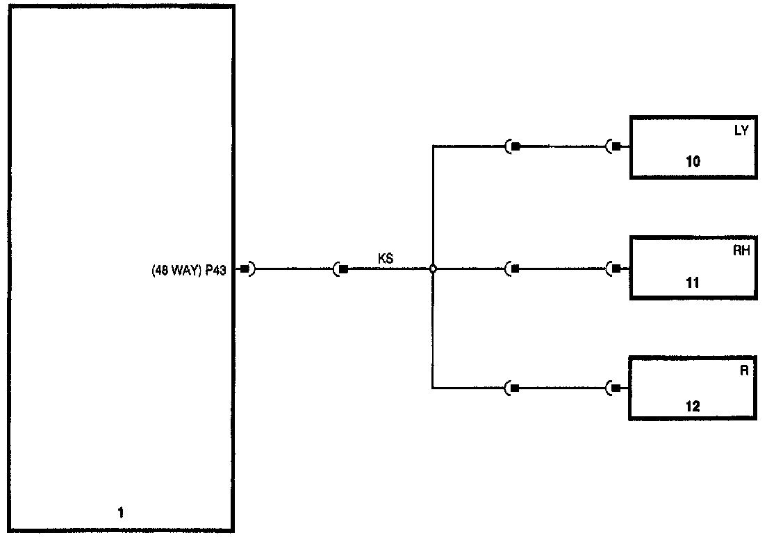 4. If indicator tell tales do not flash at double normal rate check wiring harness continuity between pin 43 (48-way connector) and Logic Control Module (LCM) harness connections 8 (LH and RH side) and 6 (rear).