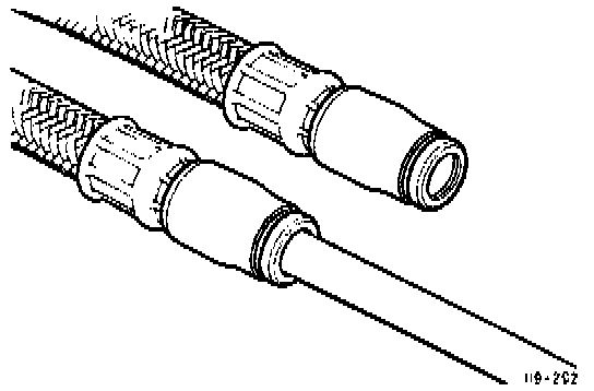 Legris quick-fit connectors are used on the fuel system (Fig. 2). At connections between hoses and the underfloor pipes, the pipes have a ridge or paint line to indicate how far the connector should be pushed onto the pipe end.