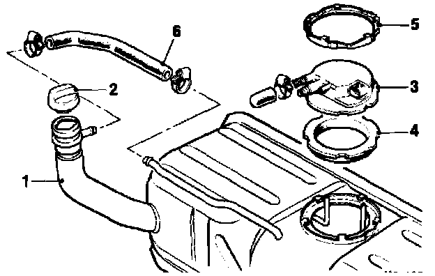 The large port (1 Fig.2) is capped. The tank vapor vent being connected directly from a tube on the tank to the fuel filler neck (6 Fig.1).