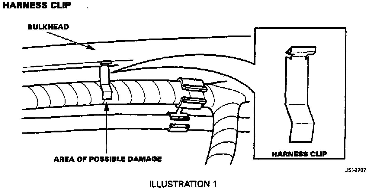 Remove and discard the clip on all vehicles where it is found, to eliminate the possibility of it penetrating the harness.