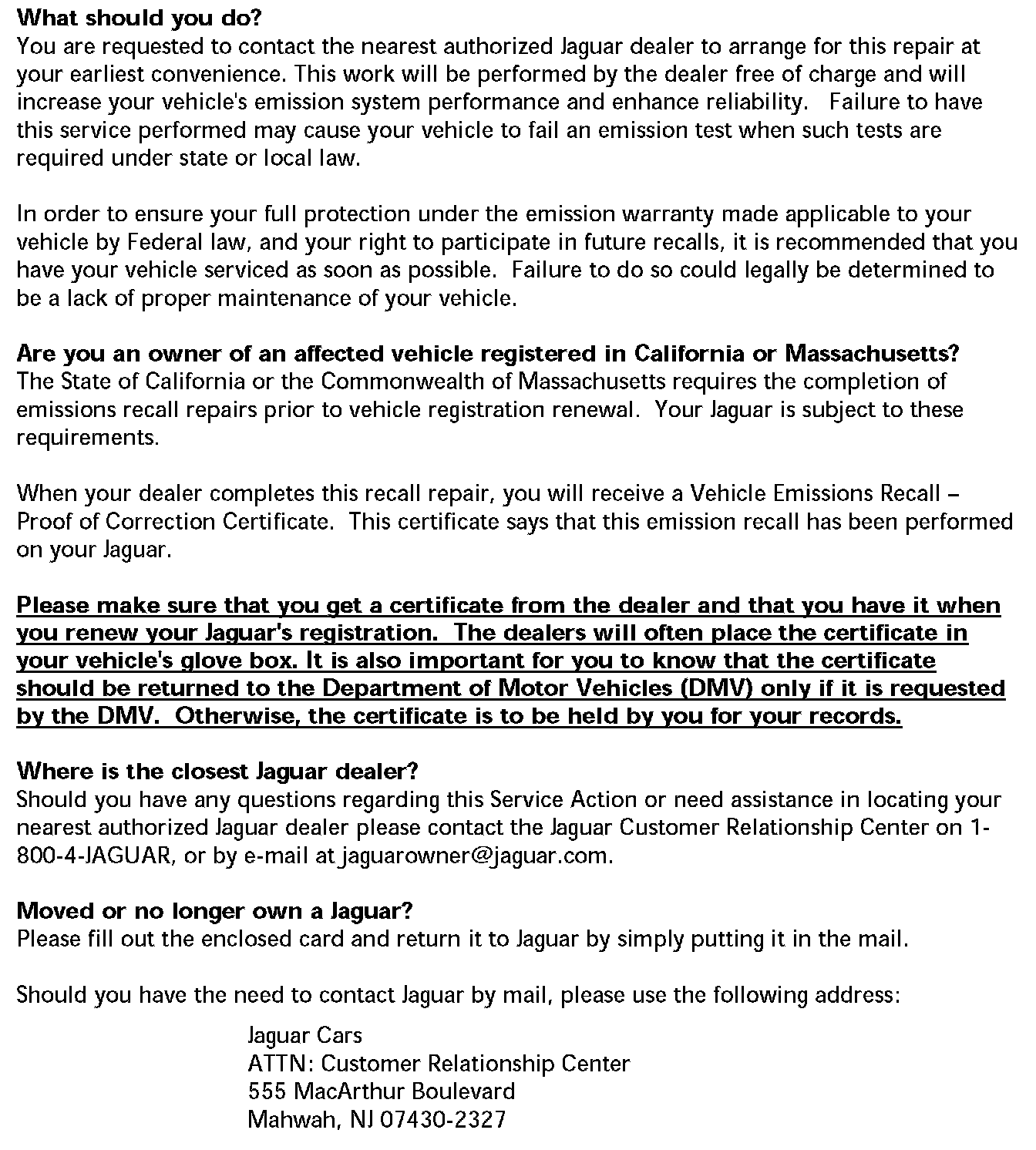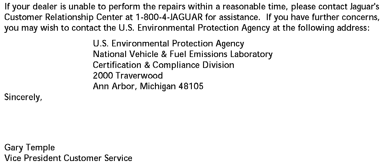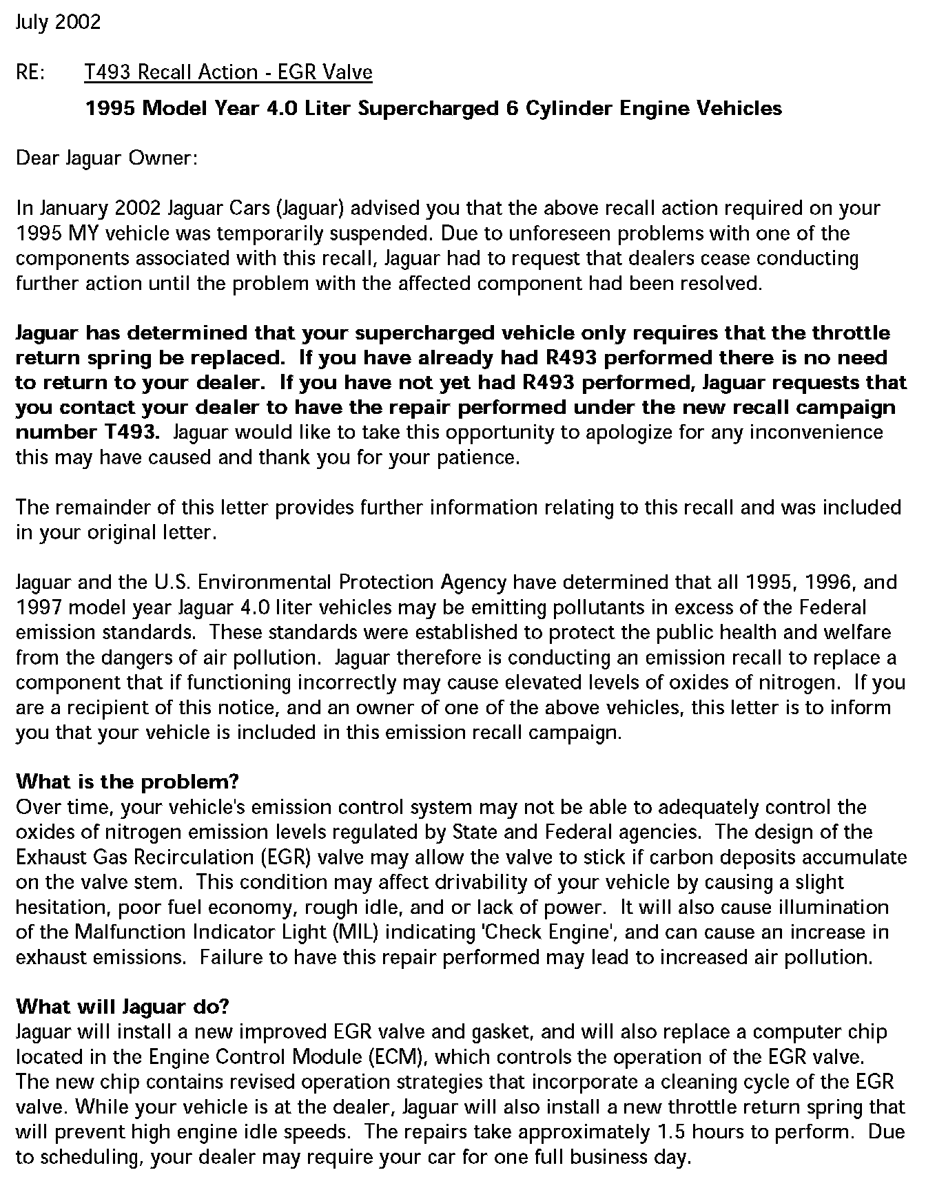 Owner Letter - 1995 Model Year 4.0L Supercharged 6 Cylinder