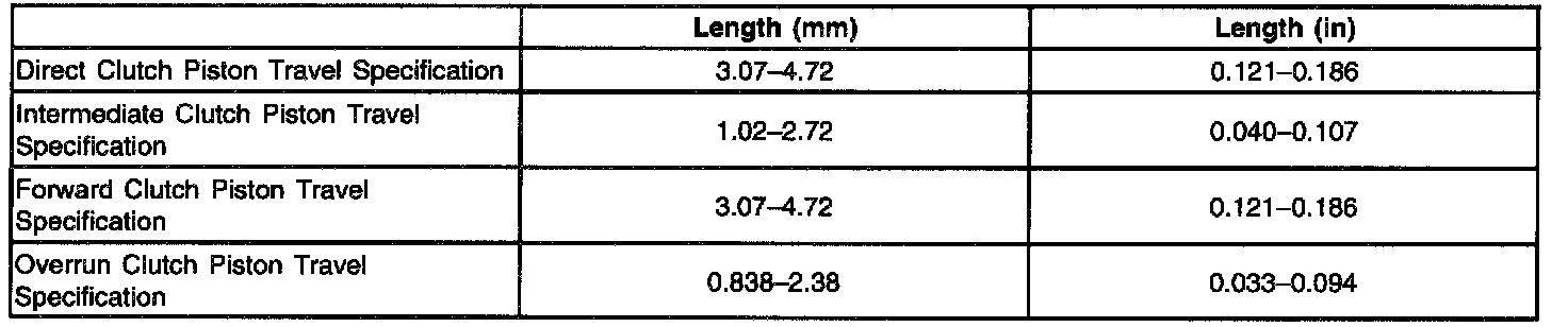 Transmission General Spec - Piston Travel Specifications