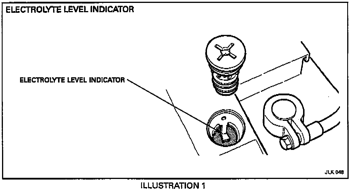 1. Do not disconnect the battery cables prior to checking the level of the electrolyte with the battery installed in the vehicle.