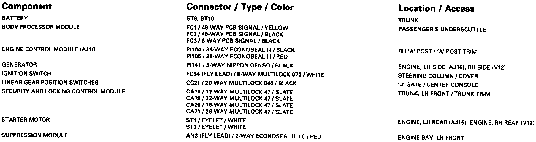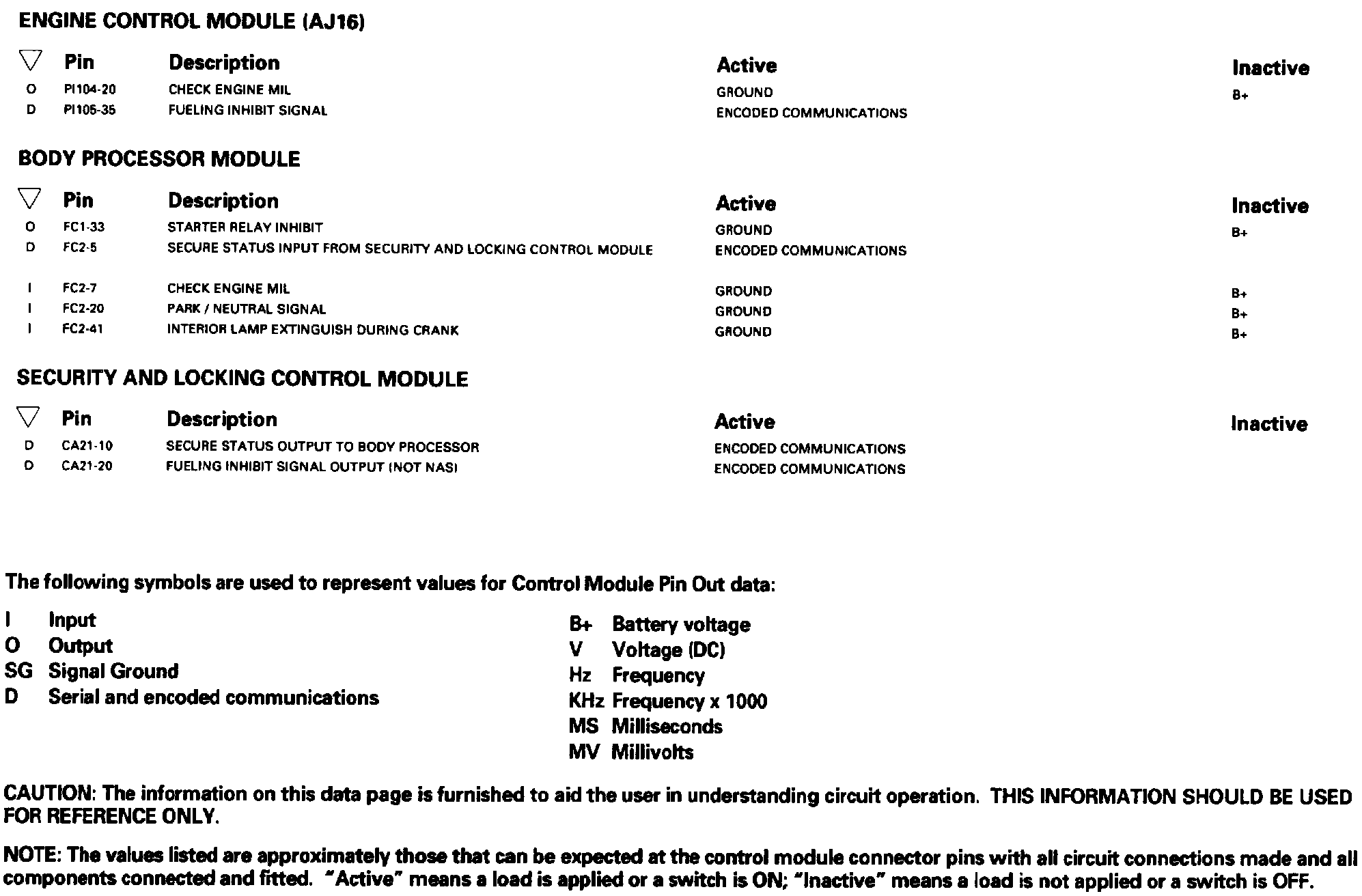 Battery; Starter; Generator: Control Module Pin Out Information: